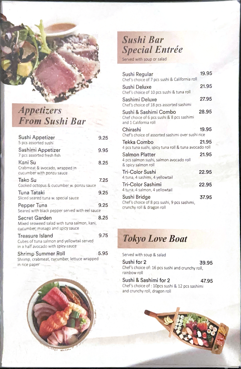 Hello Tokyo offers a menu that balances traditional Japanese flavors with approachable choices, making it a welcoming spot whether you're stopping by for a casual lunch or a relaxed dinner. The selection includes a variety of sushi rolls, fresh sashimi, and comforting hibachi dishes, reflecting a straightforward and inviting dining style.